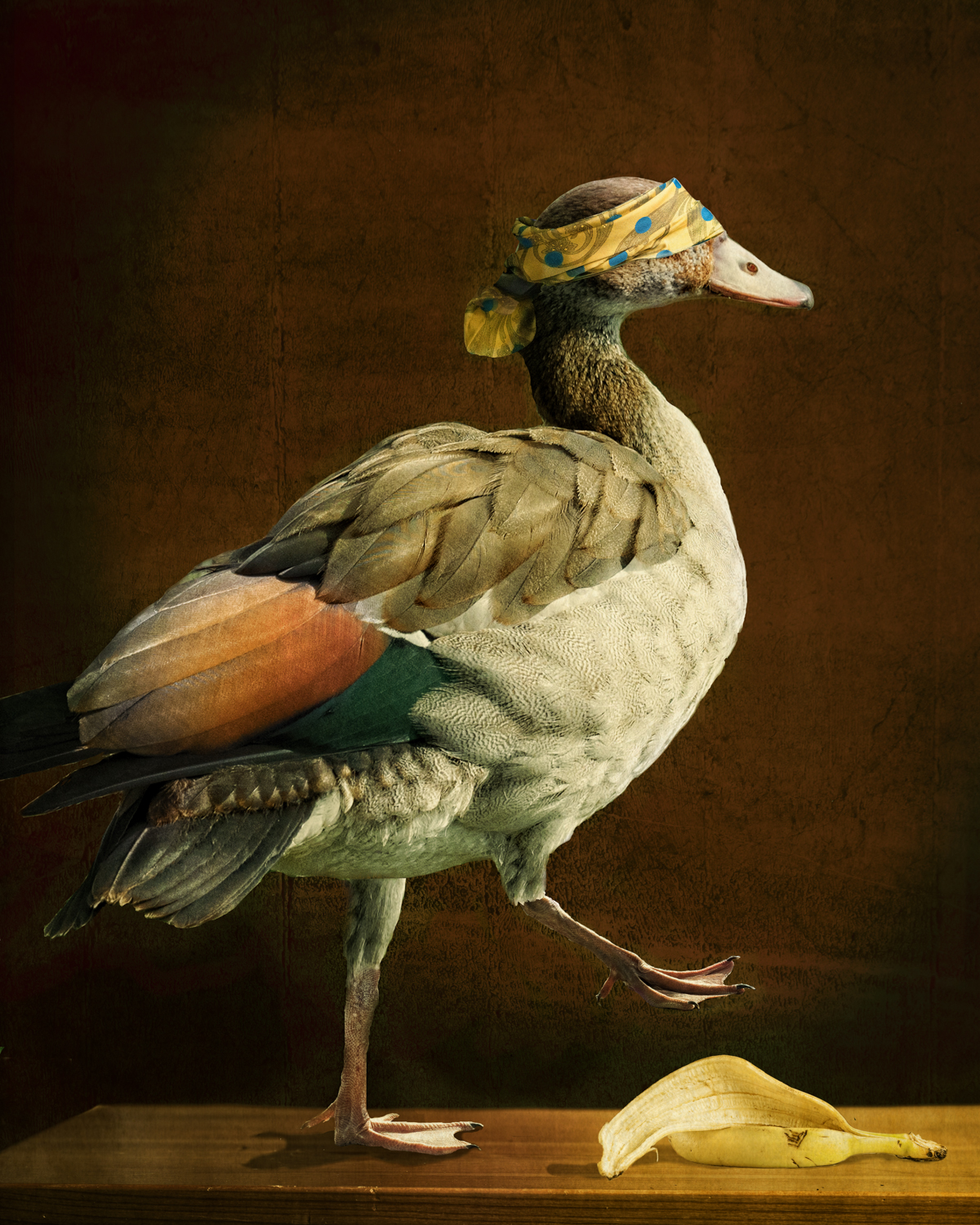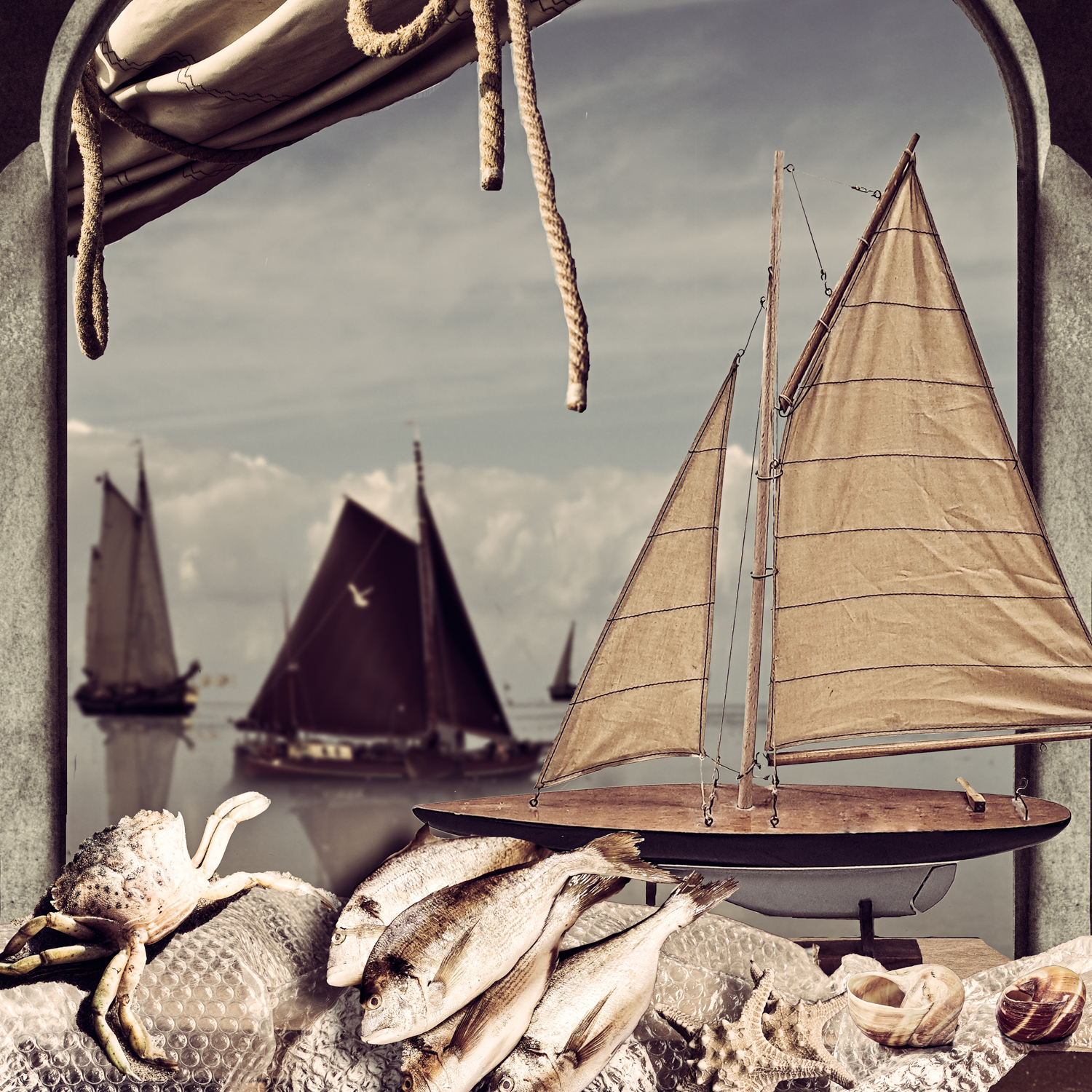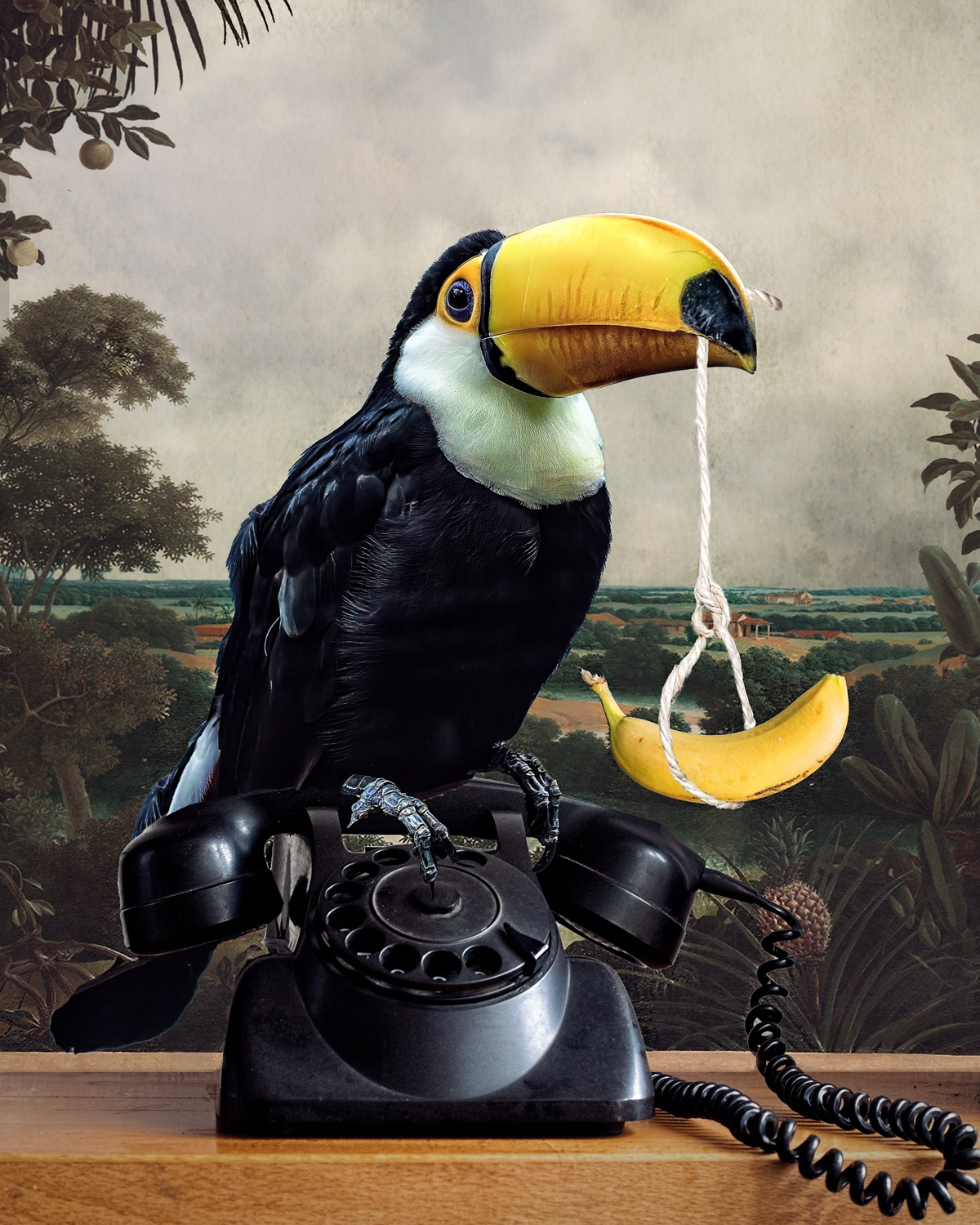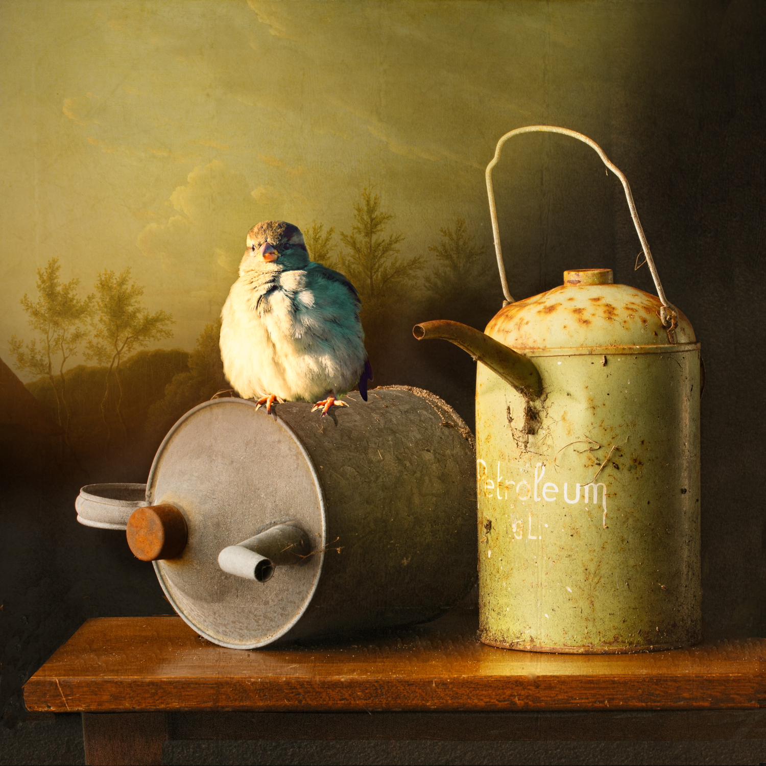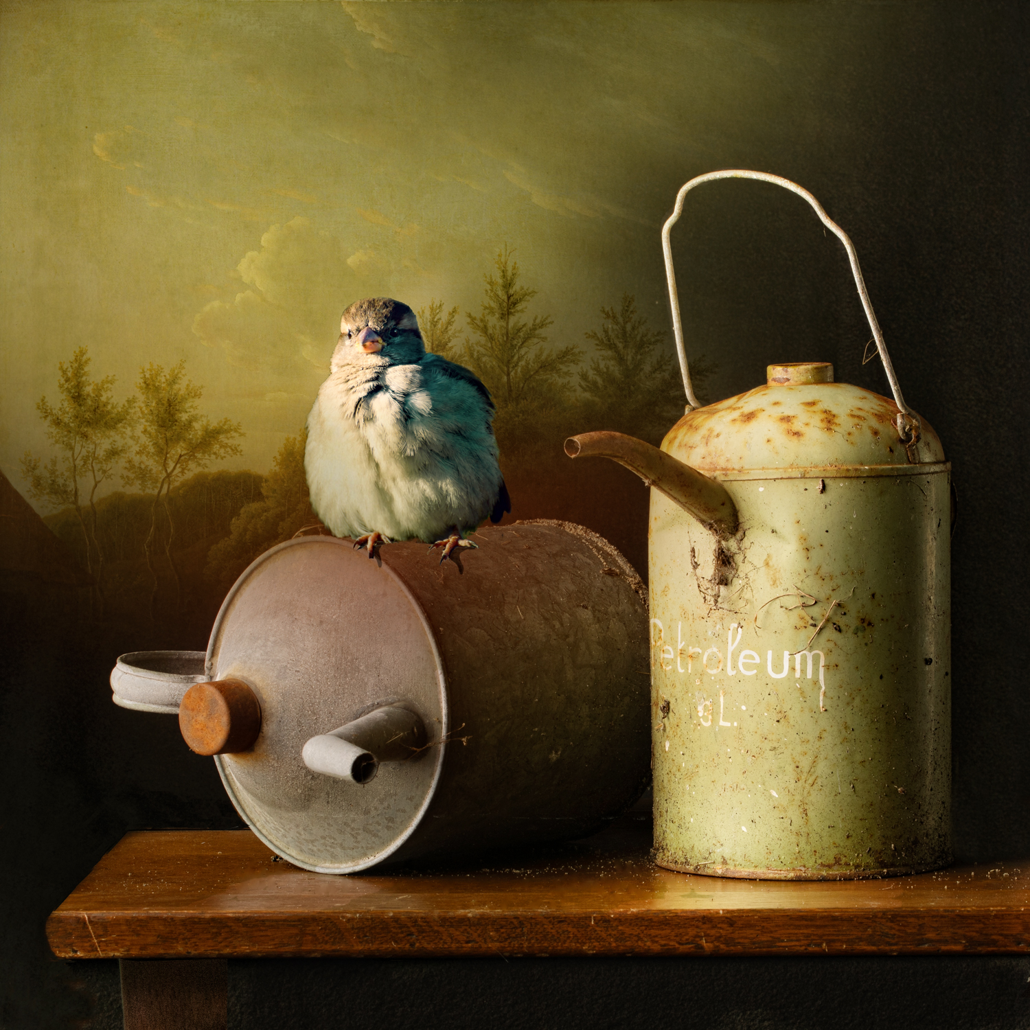 Soms heb ik een andere schilderachtige achtergrond toegevoegd of een wolkenlucht. Soms is er sprake van een humoristische twist of vervreemding. Zo heb ik in navolging van de 17de eeuwse schilderes Clara Peeters een miniatuurzelfportret in het stilleven met de zilveren theepot verwerkt. En mijn oog in het stilleven met de peer. Er is genoeg te ontdekken. Zijn het foto's of schilderijen?