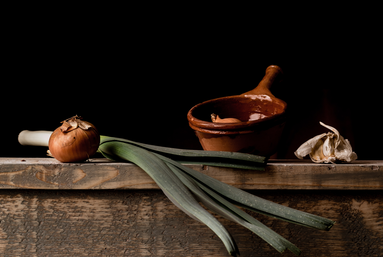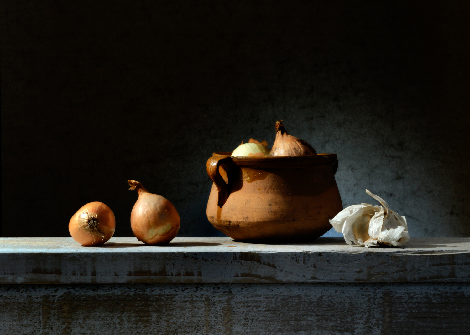 De clair-obscur techniek, ook wel chiaroscuro genoemd, draait het om het spel tussen licht en donker om zo de focus te leggen op, in mijn fotografie, groente en fruit.